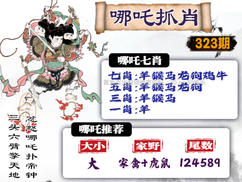 | 325期:【正版五字真言】开:虎04准 【→七八两边出←】 虎16鼠18羊47龙02牛17 |